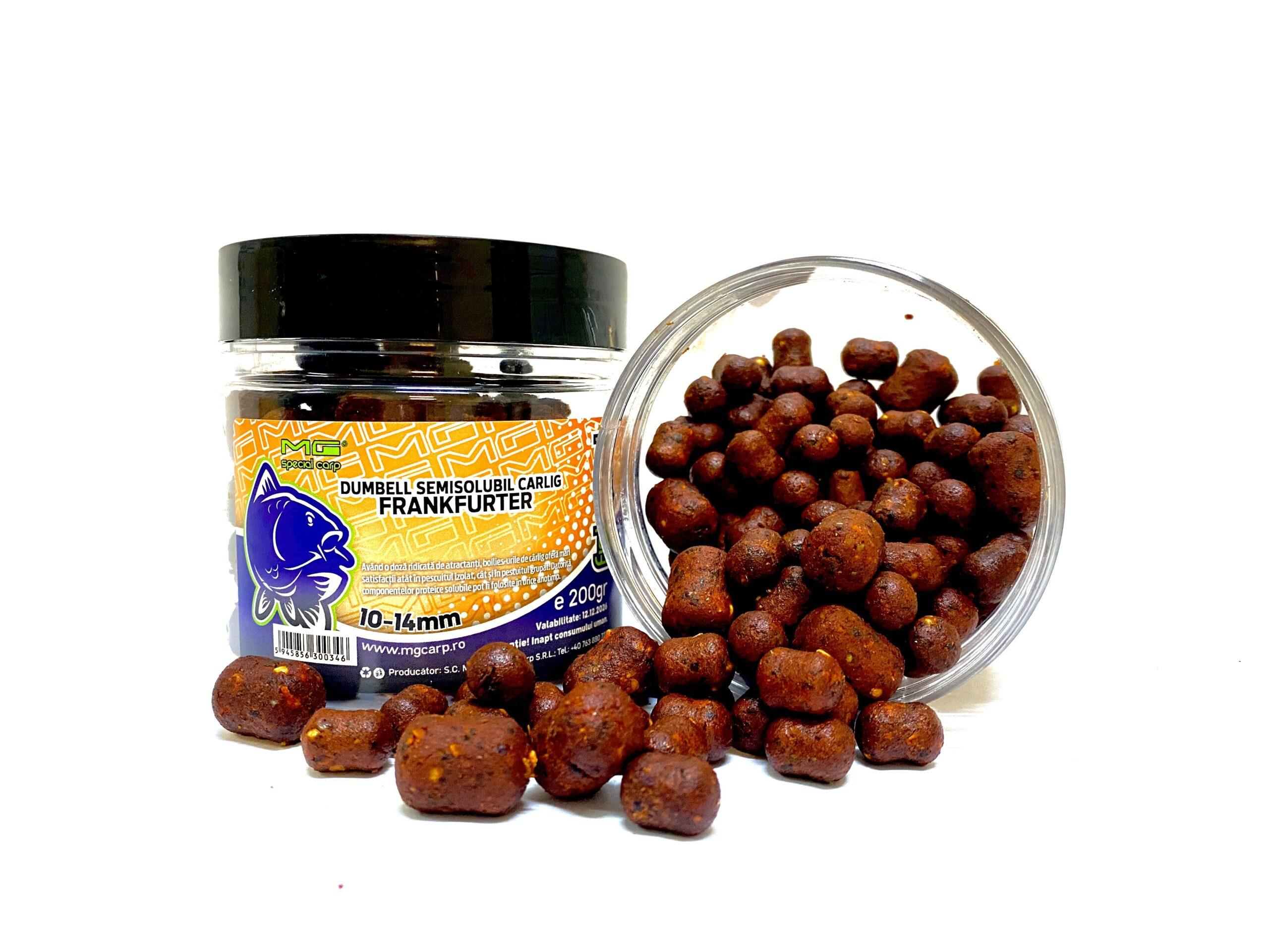 Boilies-urile Dumbell Semisolubile de Cârlig oferă mari satisfacții atât în pescuitul izolat, cât și în pescuitul grupat. Realizate dintr-un mix de făinuri cerealiere de calitate superioară, acestea au o aromă intensă ce poate fi ușor detectată de crapi și o valoare nutritivă foarte ridicată, fiind echilibrate proteic. Partea lichidă din care sunt realizate boilies-urile conține ou și componente de înaltă calitate, fiind bogată în aminoacizi esențiali și stimulatori de hrănire. Aceste boiliesuri au oferit un randament excelent atât în Delta Dunării, cât și pe lacuri sălbatice, indiferent de anotimp, datorită ingredientelor de calitate superioară din care sunt realizate.